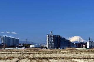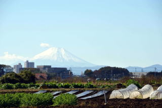 昔、サツマイモや茶を作っていた三芳野、所沢に広がる三富開墾地の畑地からは、高い建築物がなく「富士」を望むことができる。