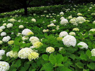 アナベルは、まだ、5分咲きといった感じで、緑っぽい若い花も多くあった。