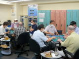 新入部員の遠藤さんを含めて当日は10名の参加申込があり、久しぶりに顔を合わせた仲間と、ワクチン接種した?とか麻雀のやり方忘れちゃったよなどと談笑しながら和気あいあいと、一方で対戦は真剣に行われました。