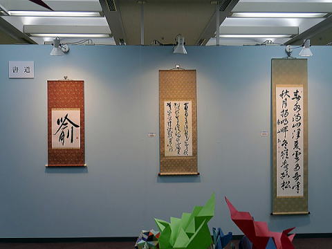左から日向日出子さん、宮崎恵子さん、森田康夫さん (書)