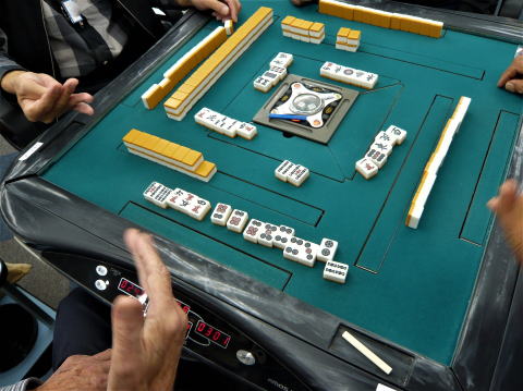 ※盤面の写真は、5巡目でリーチして、一発ツモ、タンヤオ、ピンフ、三色同順(4/5/6)、ドラドラという親の倍満(24,000点)を上がった卓上。